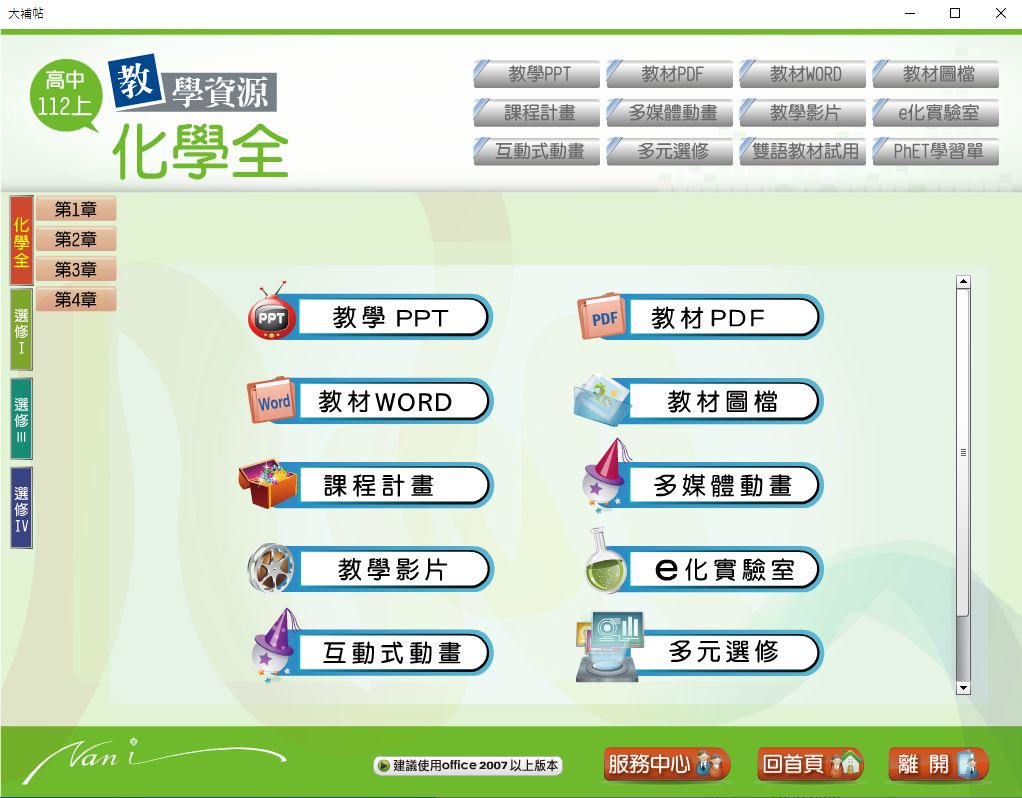 112學年上學期 高中大補帖 南一版 化學科(全、選修I、選修III、選修IV) 教學光碟
